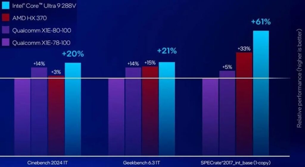 در ضمن این پردازندهها به لطف فناوری Intel Thread Director، توانایی زمانبندی گستردهتر و پویاتر را نیز دارند. نتیجه این تغییرات بهبود بیش از ۶۸ درصد دستورالعملها در هر کلاک (IPC) برای مجموعه چهارهستهای E-Core Core Ultra 200V و افزایش بیش از ۱۴ درصد در IPC برای هستههای P آن همراه با افزایش سهبرابری عملکرد پردازشی هر رشته نسبت به تراشههای نسل قبلی Meteor Lake اینتل است.
