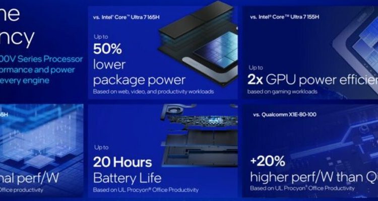 درباره این موضوع باید بگوییم اینتل در واقع از نسخهای ضعیفتر از پردازنده Snapdragon X Elite X1E-78-100 شرکت کوالکام که تقویت دوهستهای ندارد، استفاده میکند و آن را با Core Ultra 9 288V بالاترین سطح خود مقایسه میکند. طبق اطلاعات منتشرشده، لپتاپهای دارای پردازندههای Lunar Lake، باتری بزرگ ۷۵ واتی دارند.