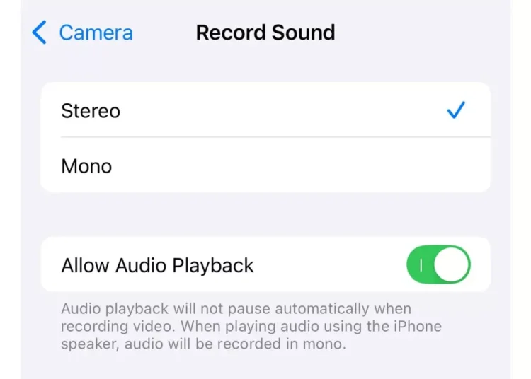 به گزارش «MacRumors»، برای دسترسی به این قابلیت کافی است وارد برنامه دوربین شوید و روی گزینه «Record Sound» بزنید. سپس گزینه «Allow Audio Playback» را فعال کنید. با فعال شدن این گزینه، میتوانید موسیقی مدنظرتان را حین فیلمبرداری پخش کنید؛ اگر صدا از طریق بلندگو پخش شود، میکروفون آیفون آن را دریافت و بهصورت مونو همراه ویدیو ضبط میشود.