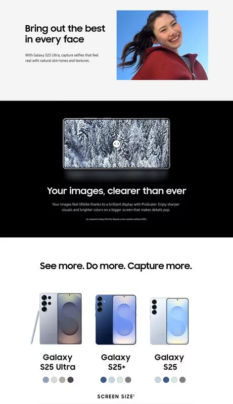 باوجود بهبود در پردازش تصویر، سری گلکسی S25 همچنان از دوربین سلفی ۱۲ مگاپیکسلی مشابه نسل قبل بهره خواهد برد. سامسونگ ادعا میکند این بهینهسازیها باعث میشود سلفیها طبیعیتر به نظر برسند و رنگ پوست و بافتها واقعیتر ثبت شوند.
