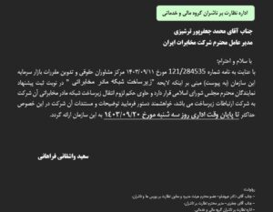 خبرگزاری هامونیه مدیرعامل مخابرات در پاسخ به پیگیریهای سازمان بورس درباره لایحه «زیرساخت شبکه مادر مخابراتی» اعلام کرد، با نمایندگان مجلس و وزارت ارتباطات تعامل